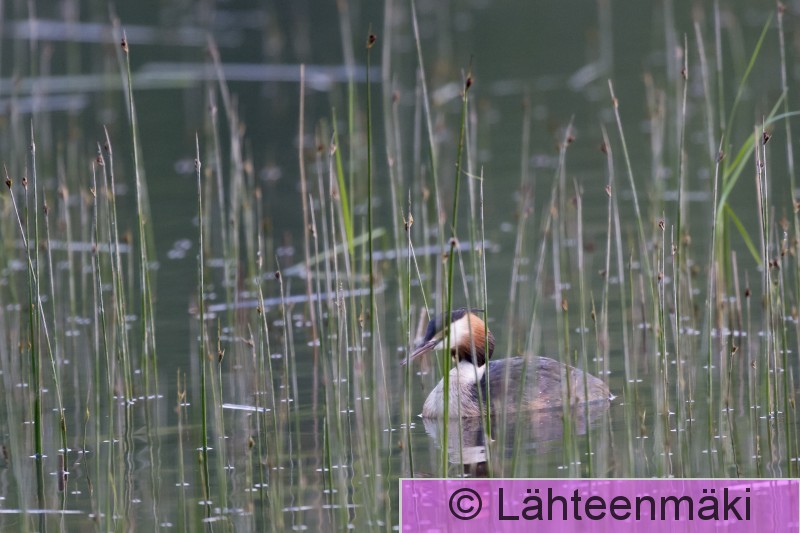 13412 Silkkiuikku, Podiceps cristatus,, kaislikko, vaakakuva