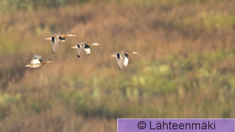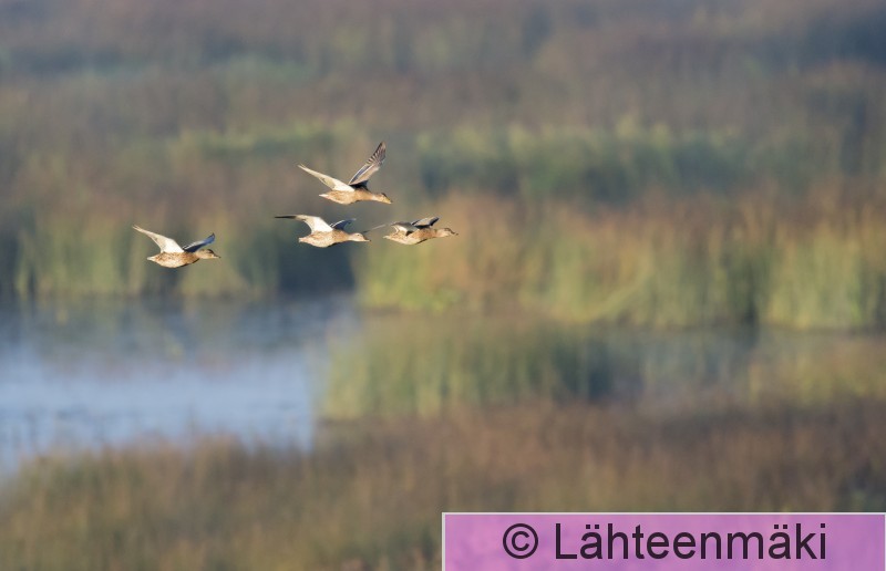 Kokemäki Puurijärvi Sinisorsaparvi lennossa.