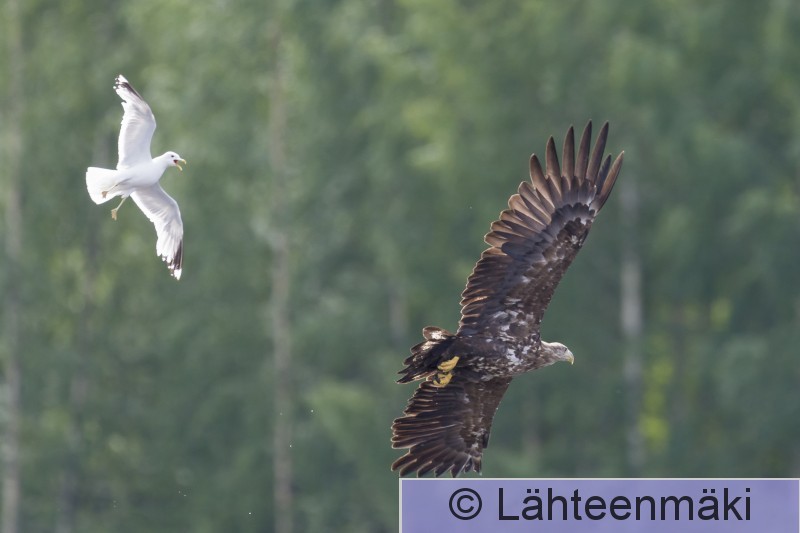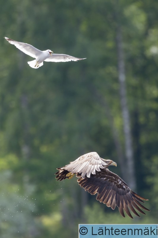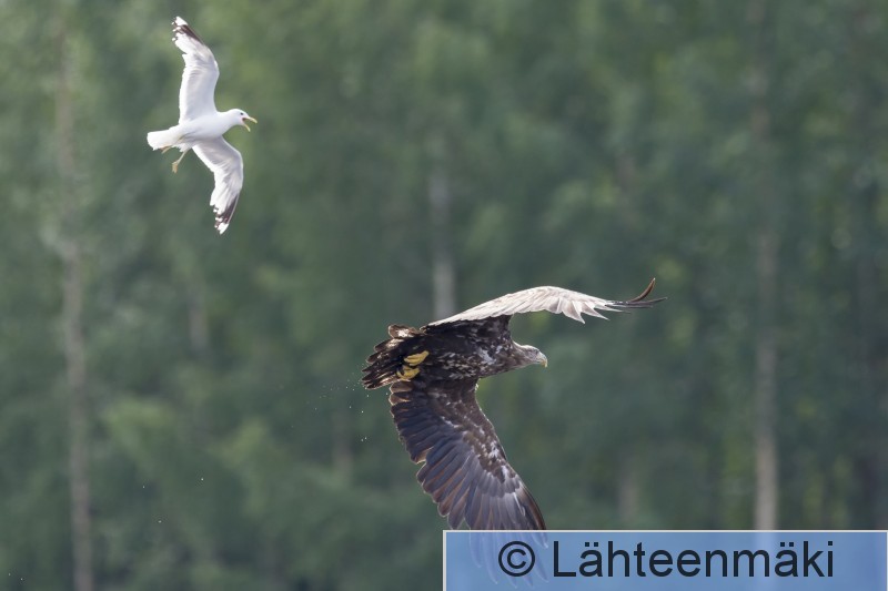 Sastamala Mouhijärvi Salmi Kalalokki härnää nuorta merikotkaa