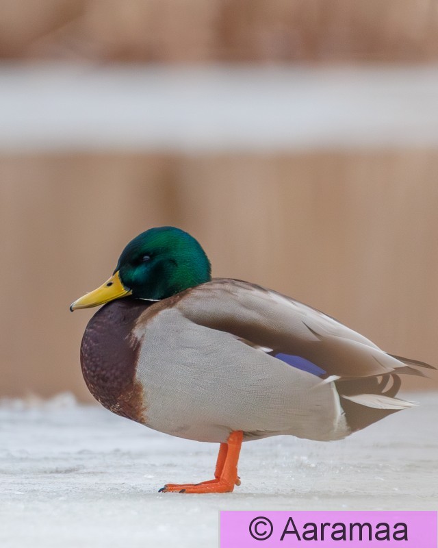 Tampere Iidesjärvi Sinisorsanaaras lepäilemässä sulan reunalla Iidesjärven länsipäässä.