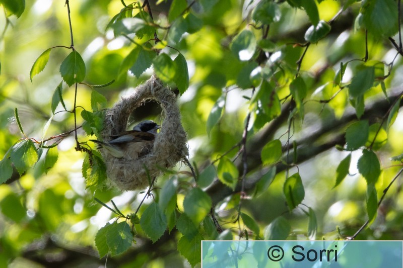 Akaa Pussitiainen rakentamassa pesää