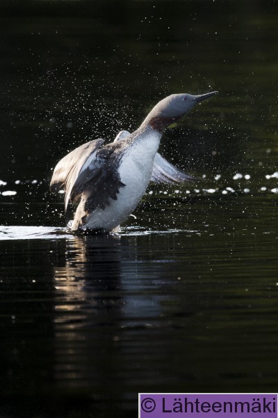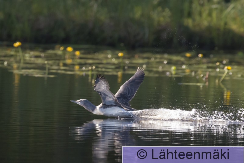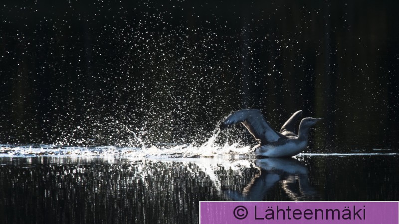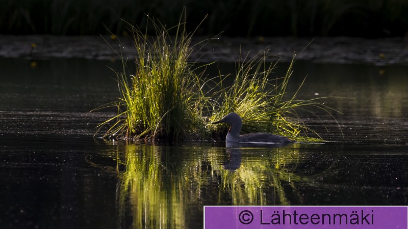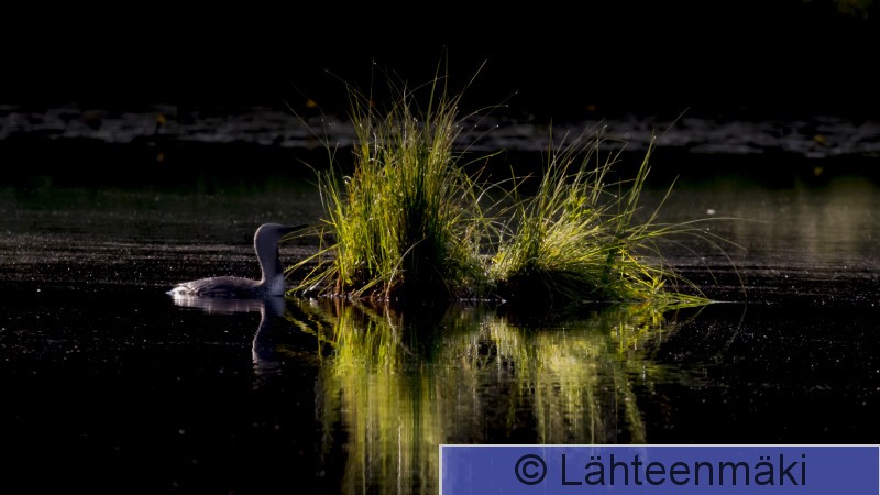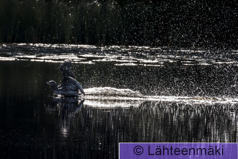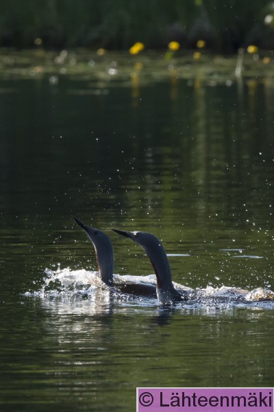 Vähä-Riutta Kangasala Isompi poikasista nielee kalan, koiras tarkkailee.