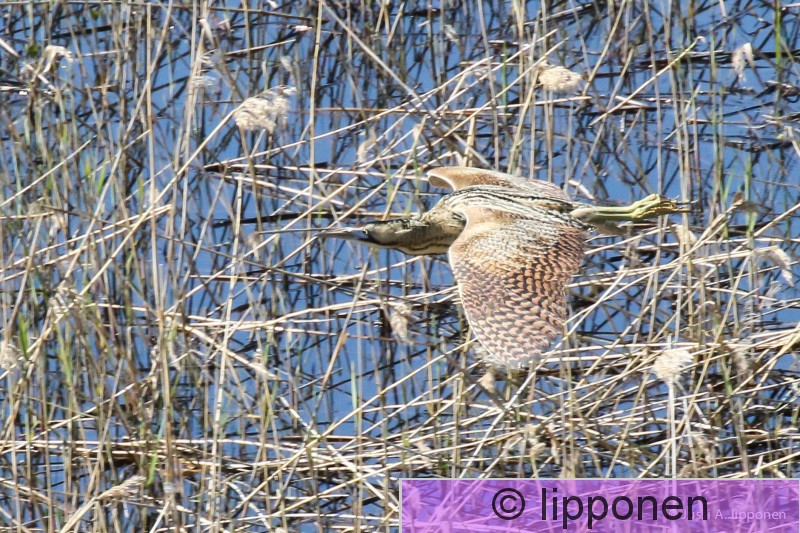 Valkeakoski Saarioisjärvi kaulushaikara lennossa