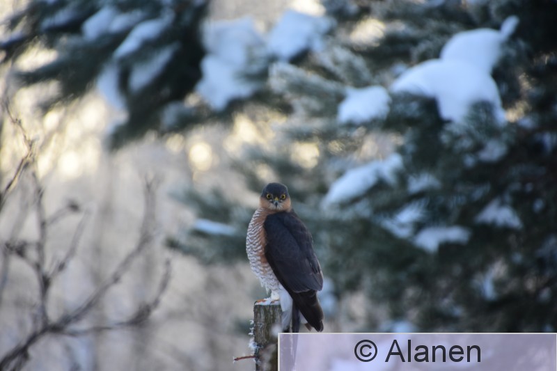 Lempäälä Varpushaukka kyttäsi useana päivänä piharuokinnalla.