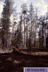 Kuusamo Närängänvaara rajavyöhyke Maakotkan pesä, josta yksi poikanen huuteli.