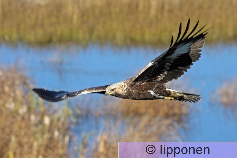 puurijärvi kärjenkallio Nuori maakotka laskeutui lintutornin katolle, josta ampui suon pintaan ruskosuohaukan kimppuun. Paluumatkalla tuli suoraan kameraa kohti.
