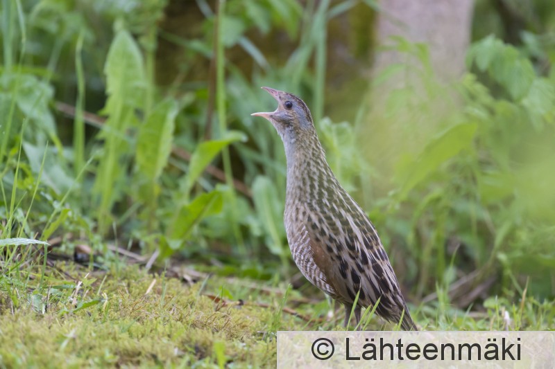 7635 Ruisrääkkä, Crex crex, laulaa, vaakakuva