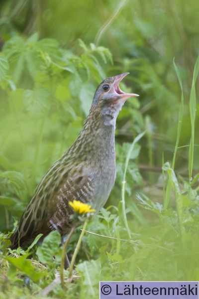 7633 Ruisrääkkä, Crex crex, laulaa, pystykuva