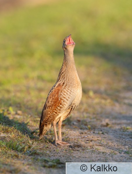 7632 Ruisrääkkä, Crex crex, laulaa, vaakakuva