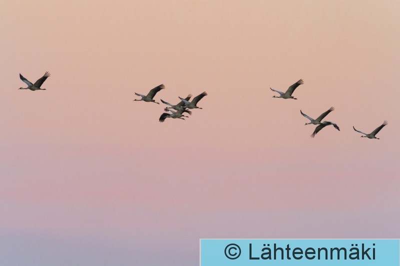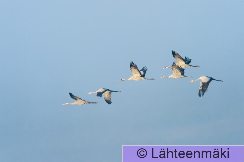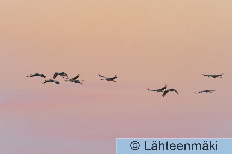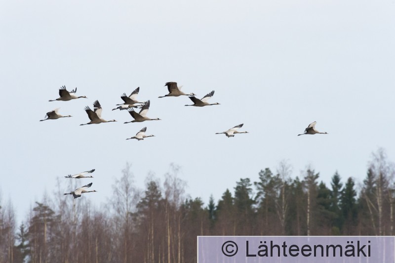 Kokemäki Puurijärvi Kurkiparvi lennossa.