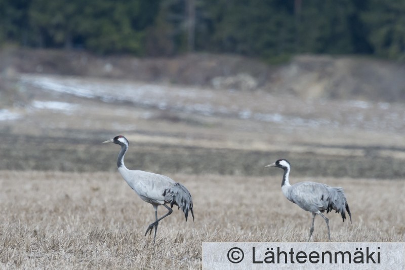 Sastamala Kurkipari ruokailee oraspellolla.