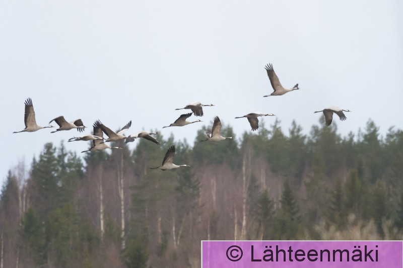 Kokemäki Puurijärvi Kurkiparvi lennossa.