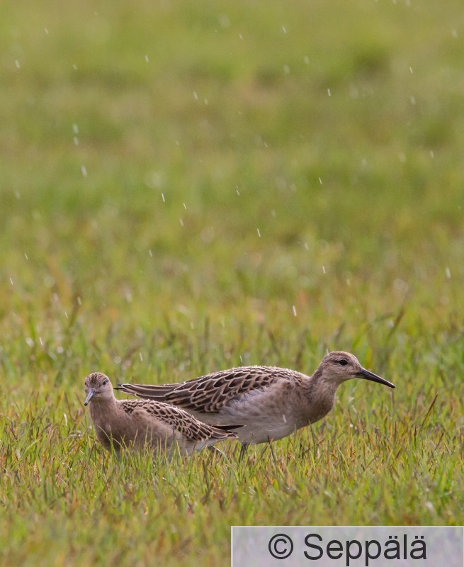 Tampere Santalahti Kaksi suokukkoa sateessa nurmikolla muuttomatkalla