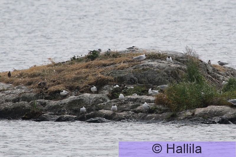 Ruovesi, Visuvesi, Aittossaresta S Osa Visuveden Aittosaaren eteläpuoliselta pesimäluodolta. Ko. vuonna luodolla pesi yli 40 paria naurulokkeja ja noin 10 paria kalatiiroja. Pesinnät onnistuivat hyvin - kuvassa näkyy jo melko kookkaita poikasia. Kalatiirat pesivät korkeimmalla kohdalla.