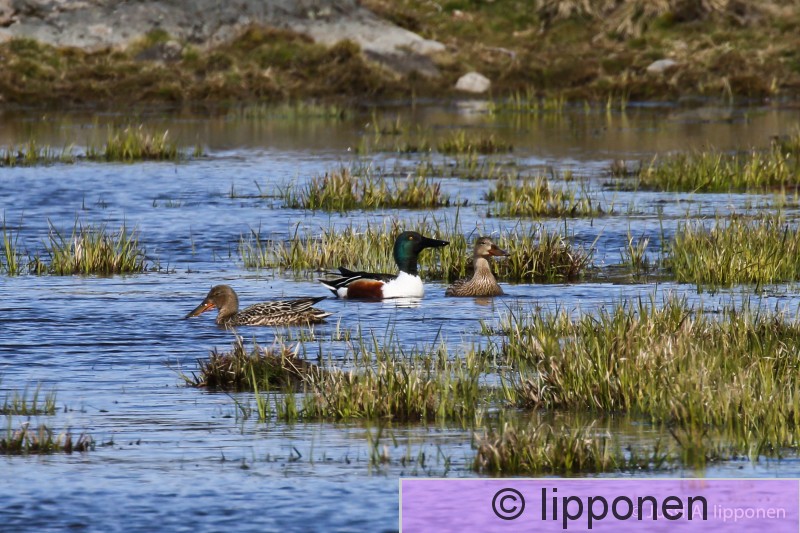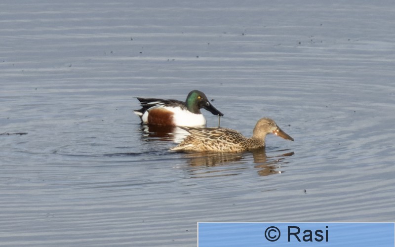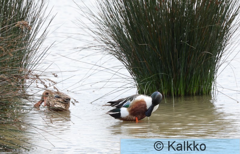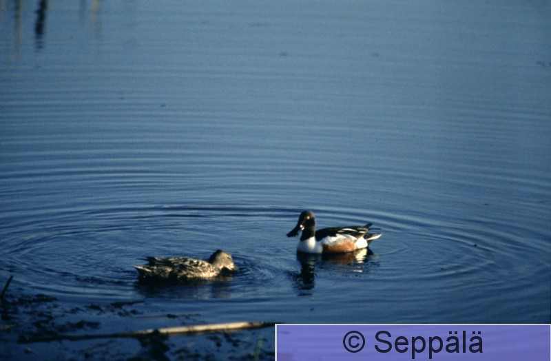 Espoo Finnoo Lapasorsapari pyörittää rantavettä, jotta pieneliöstö nousee pintaan.