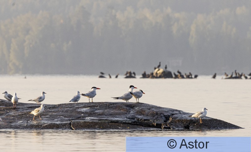 Valkeakoski Vanajanselkä 2 ad + 1 1-kv sekä naurulokkeja kauempana taustalla merimetsoja