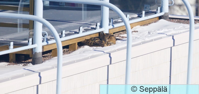 Espoo Huuhkaja hautoo Espoon keskuksessa virastotalon katolla. Kuvaaja Antti Karppi.