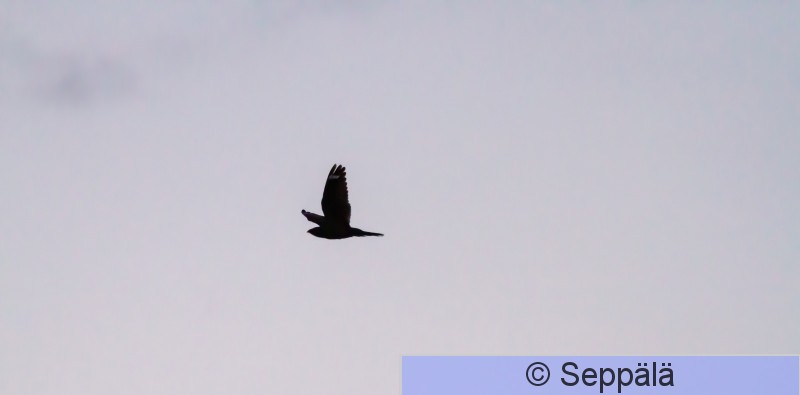 Ruovesi Siikakangas Kehrääjä lentää yötaivaalla, siluettikuva. Kuva on yhdistetty kahdesta ruudusta, mutta tilanne on aito.
