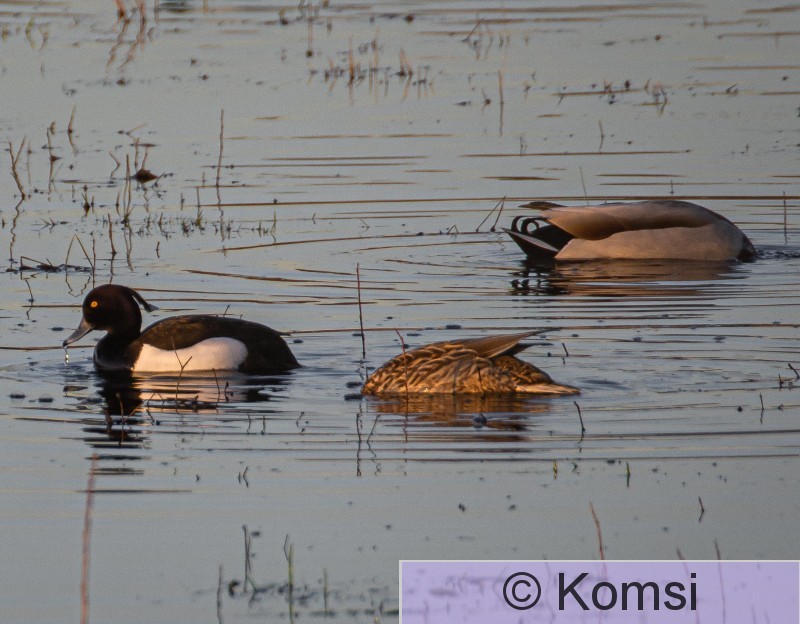 Kangasala Herttuala Pellolla olevassa tulvalammikossa sinisorsia ja tukkasotka