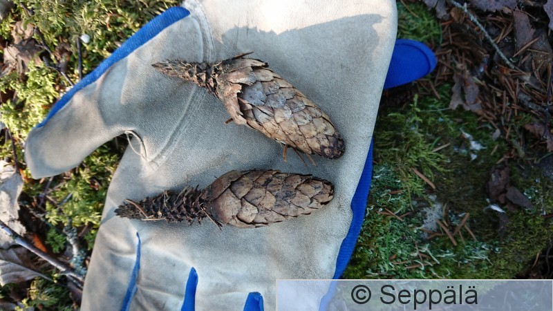 Kangasala Vesijärvi Vertailun vuoksi oravan syömiä käpyjä.