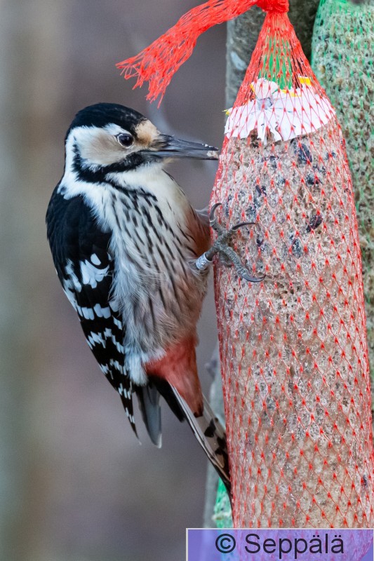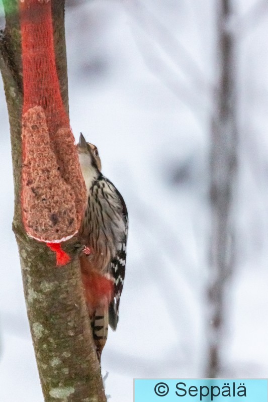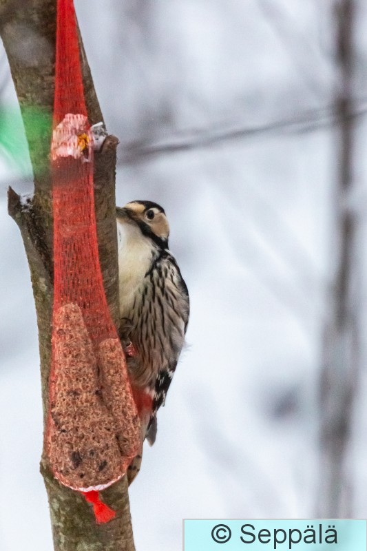 Pälkäne Myttäälä Valkoselkätikka ruokintalaitteella.