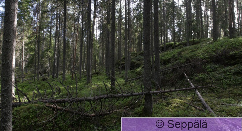 Ylöjärvi, Kuru, Länsi-Aure, Raattaniemen luonnonsuojelualue Kuusimetsää suojelualueella, pohjantikan pesimäympäristöä.