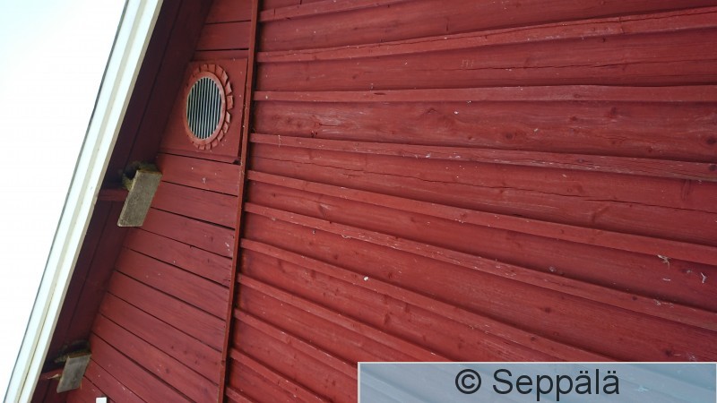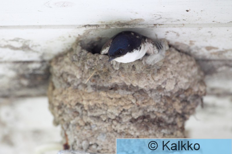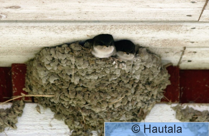 Kangasala Saarikylät Käpytikka tuhosi kaikki räystäspääskyn pesä. Toinen asia: pääskyt tykkäävät pesiä aina lauta-alustan alapäähän; siihen lienee helpompi lentää. Kuva Eero Tynskä.