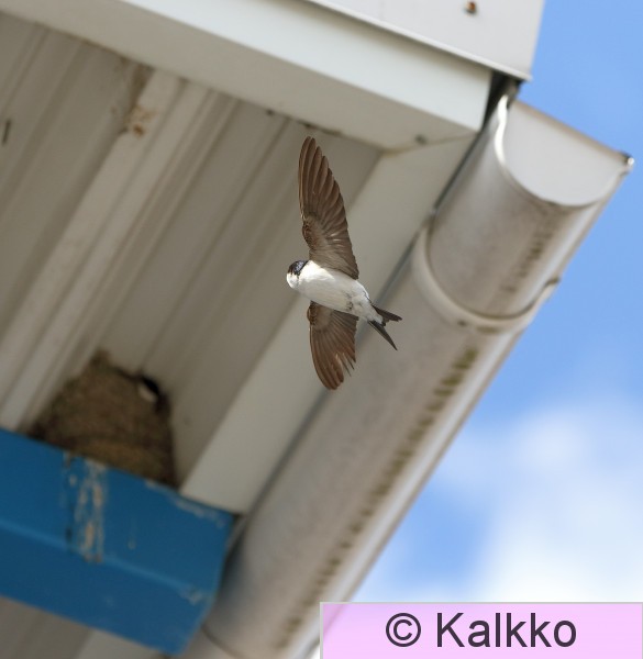 Sääksmäki Silta räystäspääsky tulee hakemaan pesäaineita
