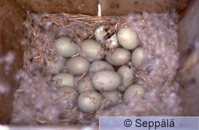 Ikaalinen Luhalahti Sipsiöjärvi Telkkä lähdössä pesästään, joka on vanhassa palokärjenkolossa rantahaavassa.