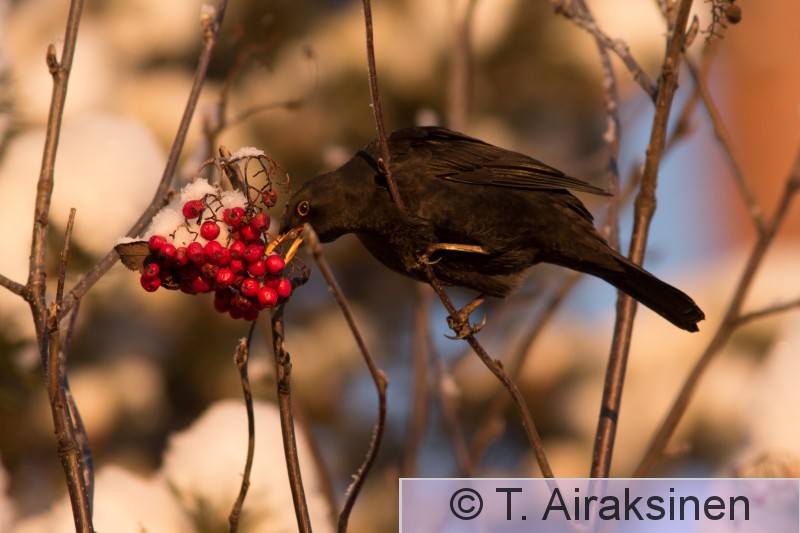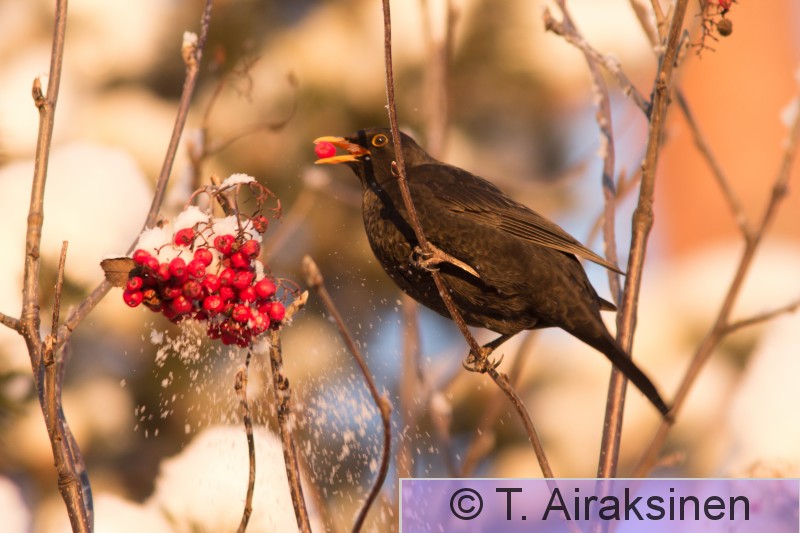 Tampere Arboretum Mustarastas ruokinnalla