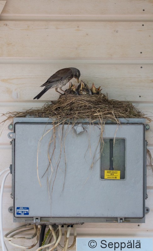 Ylöjärvi Kuru Räkättirastaan pesä mökin sähkökaapin päällä.