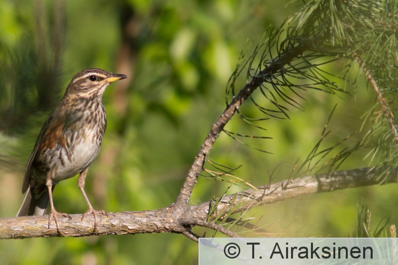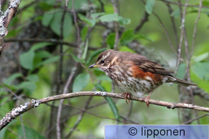 Tampere, Hervanta, Suolijärven rannan läheinen metsikkö Punakylkirastaspari oli rakentanut pesän kannon nokkaan lähelle luontopolkua. Poikaset olivat vielä hyvin pieniä ja vanhemmat lämmittivät niitä vuorotellen.