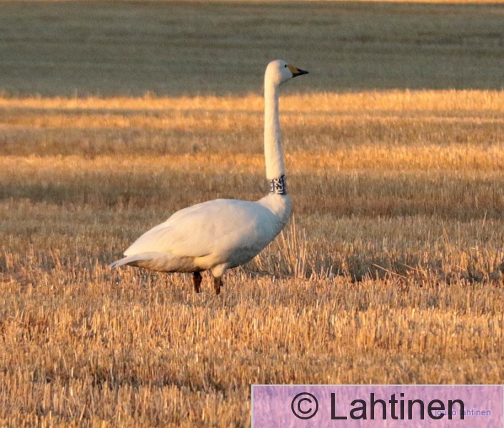 Kulmalanniitty mänttä-Vilppula Rengastettu laulujoutsen. Rengastus tehty Latviassa pesällä 27.07.2014.