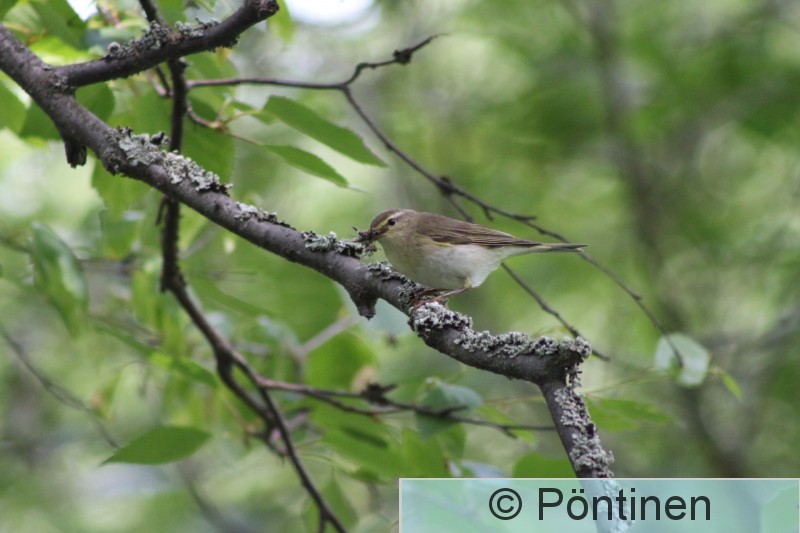Kaukajärvi, Muinaishaudankadun lähellä, Tampere Pajulintu vie ruokaa poikasilleen. Sillä oli pesä piilossa tiheässä pensaikossa.