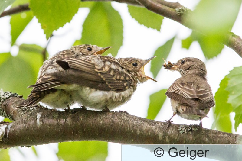 Kangasala Suomatka Harmaasieppoemo ruokkii poikasiaan.