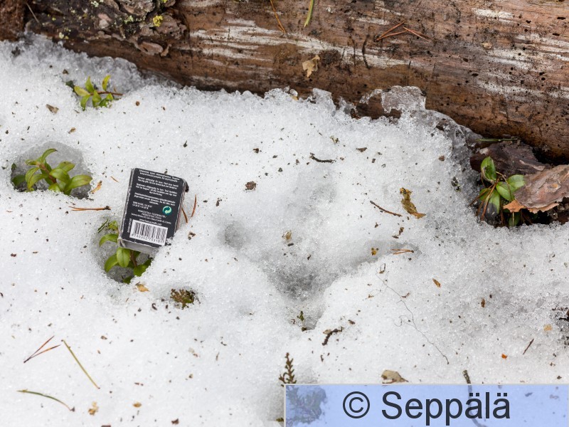 Hämeenkyrö Metson jalanjälki, koiras. Kuvaaja Timo J. Palomäki.