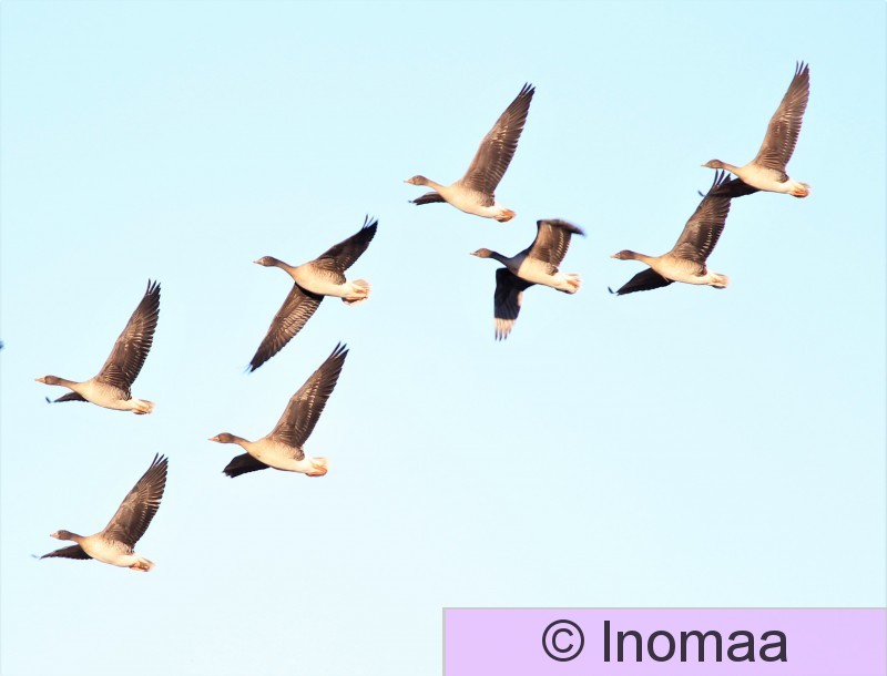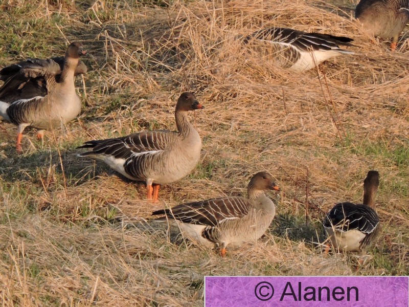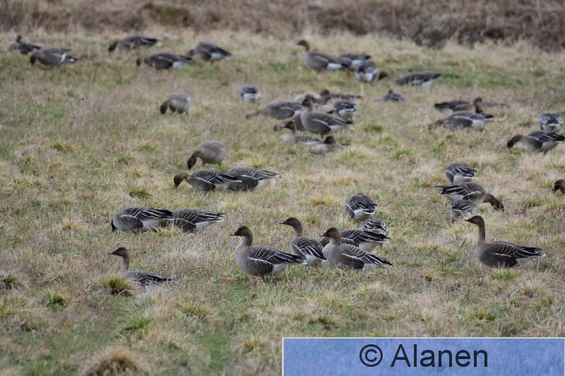 14110 kevät hanhiparvi pellolla metsähanhi tundrahanhi