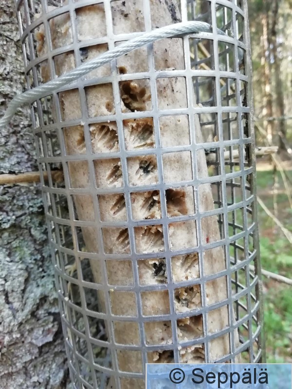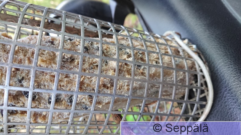 Pälkäne Kurkijoki Näin riistakamerasta, että närhi kävi syömässä tätä rasvaa n. viikon ajan joka päivä n. 3 h välein n. 15 min kerrallaan. Rasvamakkara oli 600 g ja siitä oli lopulta syöty n. 1/3.