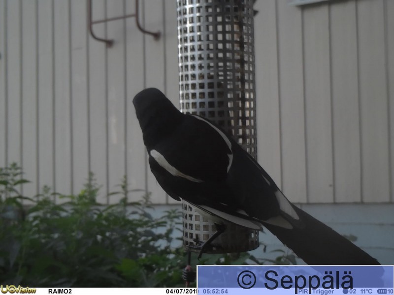 Pälkäne Myttäälä Harakka ruokintalaitteella.