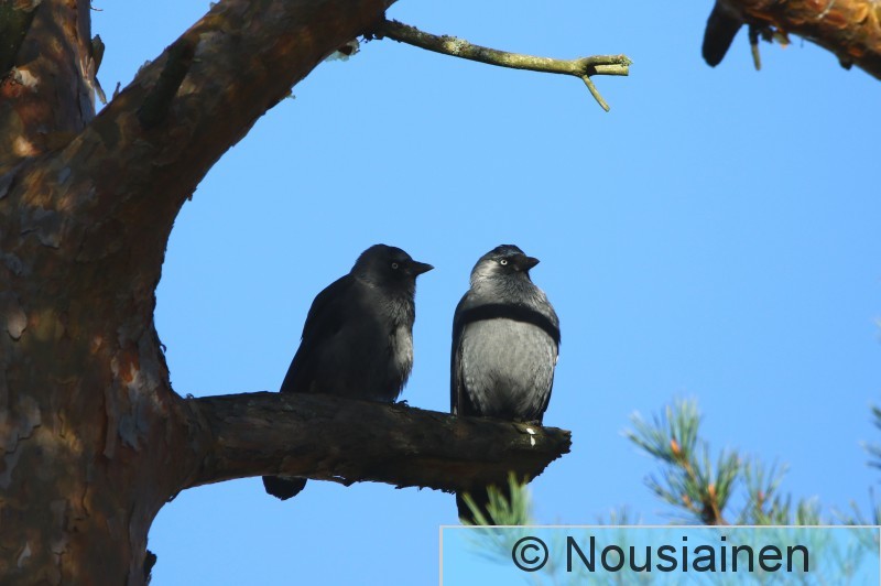 Hyvinkää Lentokyvytön naakan poikanen asfaltilla. Emo seurailee vieressä.