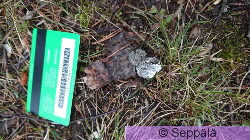 Kangasala Saarikylät Fasaanin uloste haavanlehden päällä. Koiras kakki sen kuvausta edeltäneenä päivänä.
