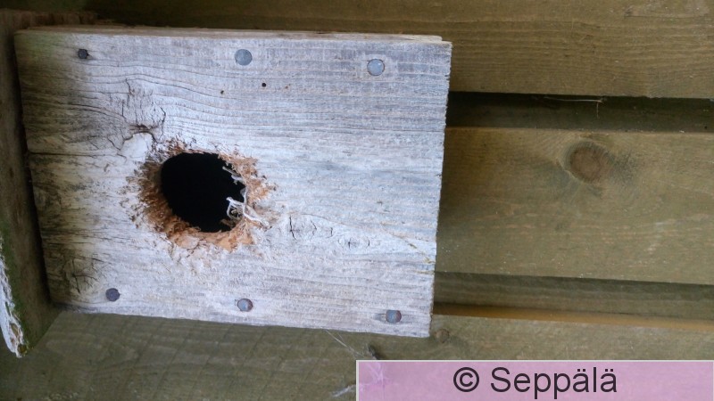 Kangasala Saarikylät Orava on nakertanut lentoaukon riittävän suureksi päästäkseen sisään.