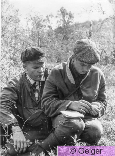 Utsjoki Kuvaaja J. Savolainen, julkaisulupa on.Raimo Latja ja Heikki Kanerva kotkareissulla.pvm ei tarkka, 1962.