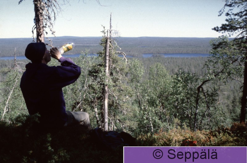 Kuusamo Närängänvaara Taustalla Venäjää. Kuvassa Petri Seppälä vesitauolla.