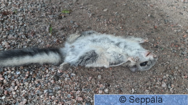 Kangasala Raikku Kuollut liito-orava pihatiellä. Kuvaaja Jari Haapalainen.