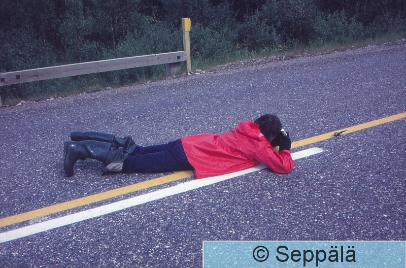 Kainuu Lasse Kosonen valokuvaa autoon törmännyttä pohjansirkkua Kainuussa heinäkuussa 1976.