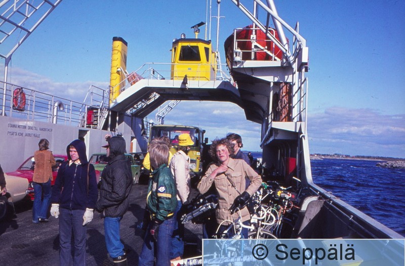 Hailuoto Sammon yhteislyseon luontokerho Kuorga teki toukokuun lopulla 1975 jokakeväisen 5 vrk kevätretkensä Hailuotoon. Retkeläiset lossilla.