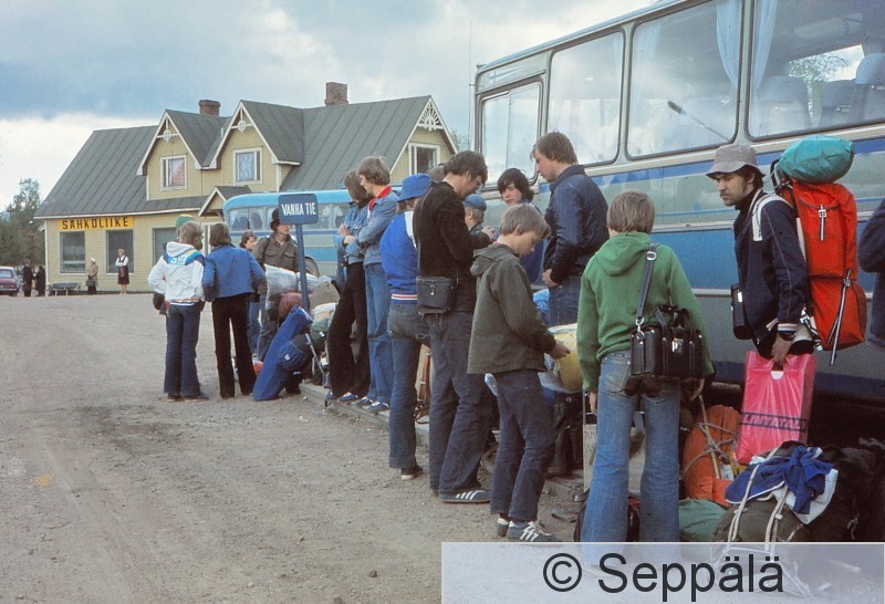 Kotka, ehkä Sammon yhteislyseon luontokerho Kuorga teki toukokuun lopulla 1977 jokakeväisen 5 vrk kevätretkensä Virolahdelle. Taisimme mennä Tampereelta Kotkaan junalla ja loppumatkan bussilla. Tässä odotellaan bussin lähtöä. Rahastaja oli vihaianen, ettemme olleet ilmoittaneet etukäteen, niin he olisivat ottaneet toisenkin bussin. Kuvassa keskellä Lasse Kosonen ja Teppo Rantanen, oikeassa reunassa Erkki Renvall.