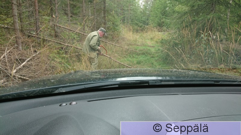 Pälkäne Laipanmaa Vanhaa tieuraa pitkin päästään syvälle metsään, kun kaatuneet puut siivotaan pois edestä. Kuvassa Jouko Hakala.