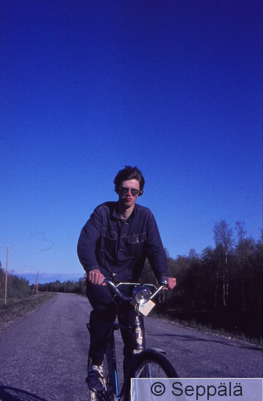 Hailuoto Lasse Kosonen polkee Hailuodossa toukokuun lopulla 1975, kun Sammon yhteislyseon luontokerho Kuorga teki sinne 5 vrk kevätretkensä.